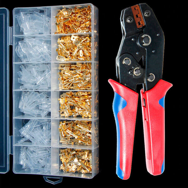 Set uključuje muške i ženske konektore u tri veličine (2,8, 4,8, 6,3 mm).