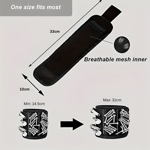 Snažni magneti u ovoj narukvici lako se omotavaju oko vašeg zgloba, držeći male metalne predmete poput šrafova, eksera i zavrtnja na dohvat ruke.