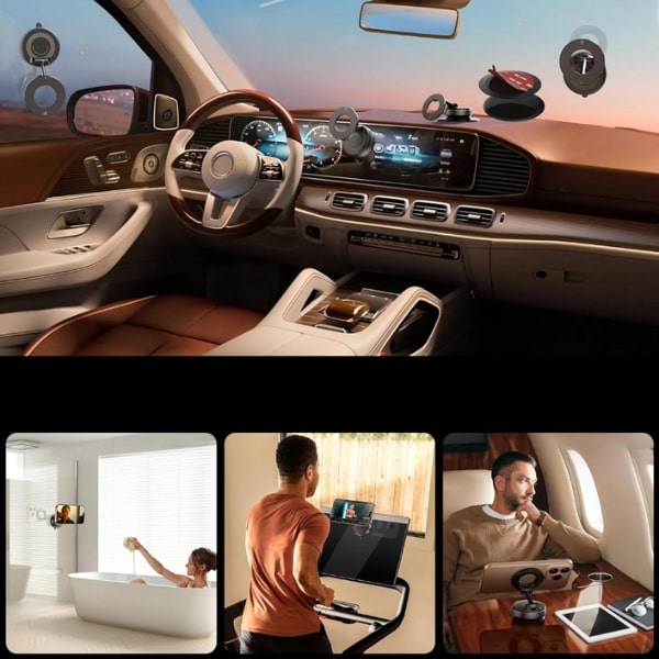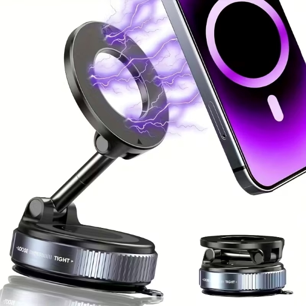 Držač za telefon MAGHOLDZ koristi snažno vakuumsko prijanjanje koje se pojačava pri vibracijama, čvrsto držeći vaš telefon na glatkim površinama bez ostavljanja tragova na staklu, komandnoj tabli ili stolu.
