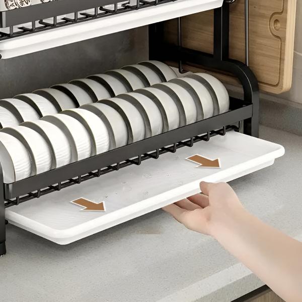 Inovativni višeslojni dizajn omogućava sušenje tanjira, čaša, zdela, posuđa i pribora za jelo u jednom kompaktnom uređaju. Uštedite dragoceni prostor na radnoj površini dok vaša kuhinja ostaje organizovana i oslobođena nereda.