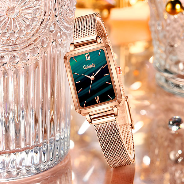 Ovaj sat ima sjajnu ružičasto-zlatnu boju i prelep zeleni brojčanik. Dodaje stil svakoj haljini, farmerkama ili formalnoj odeći.